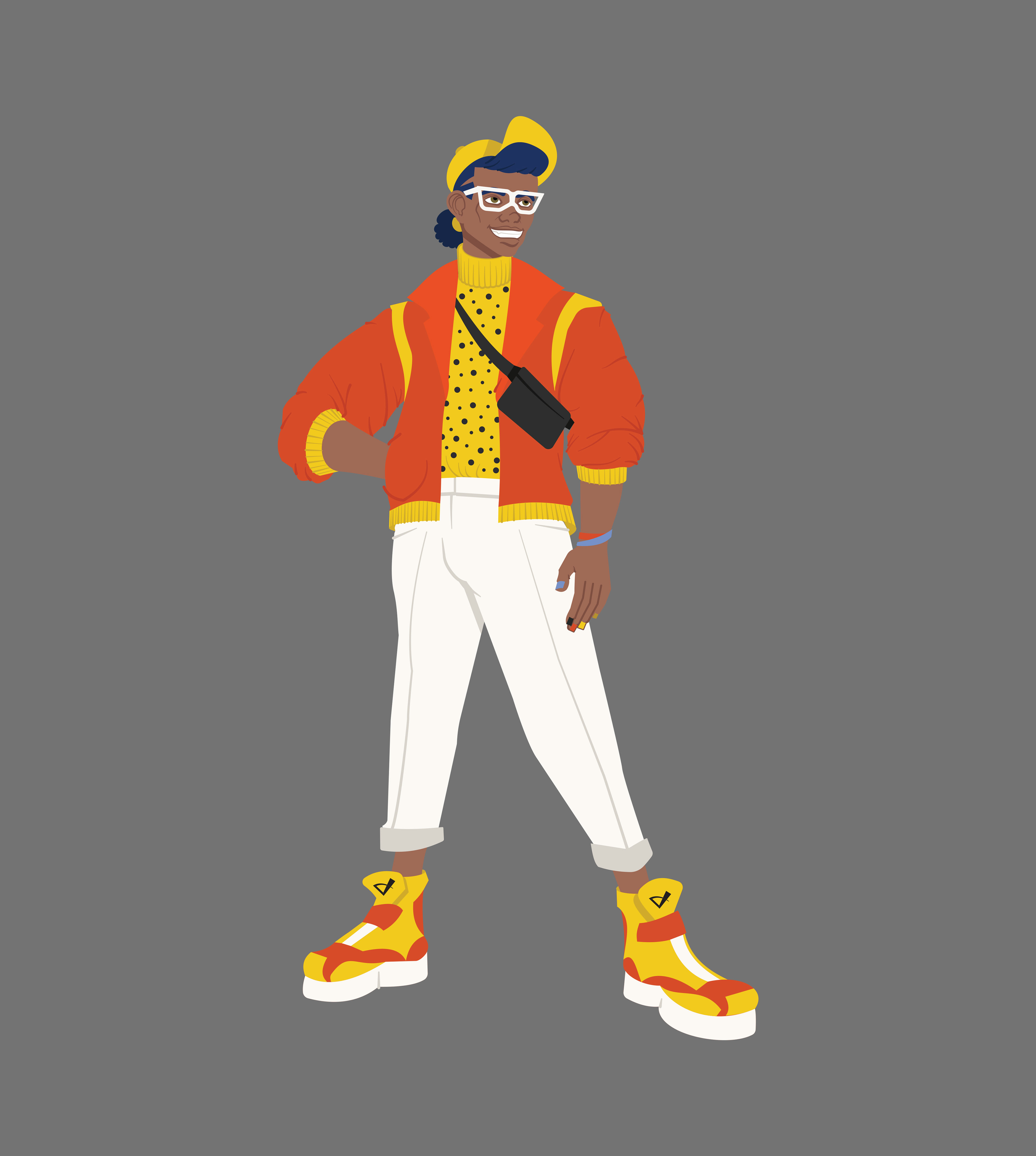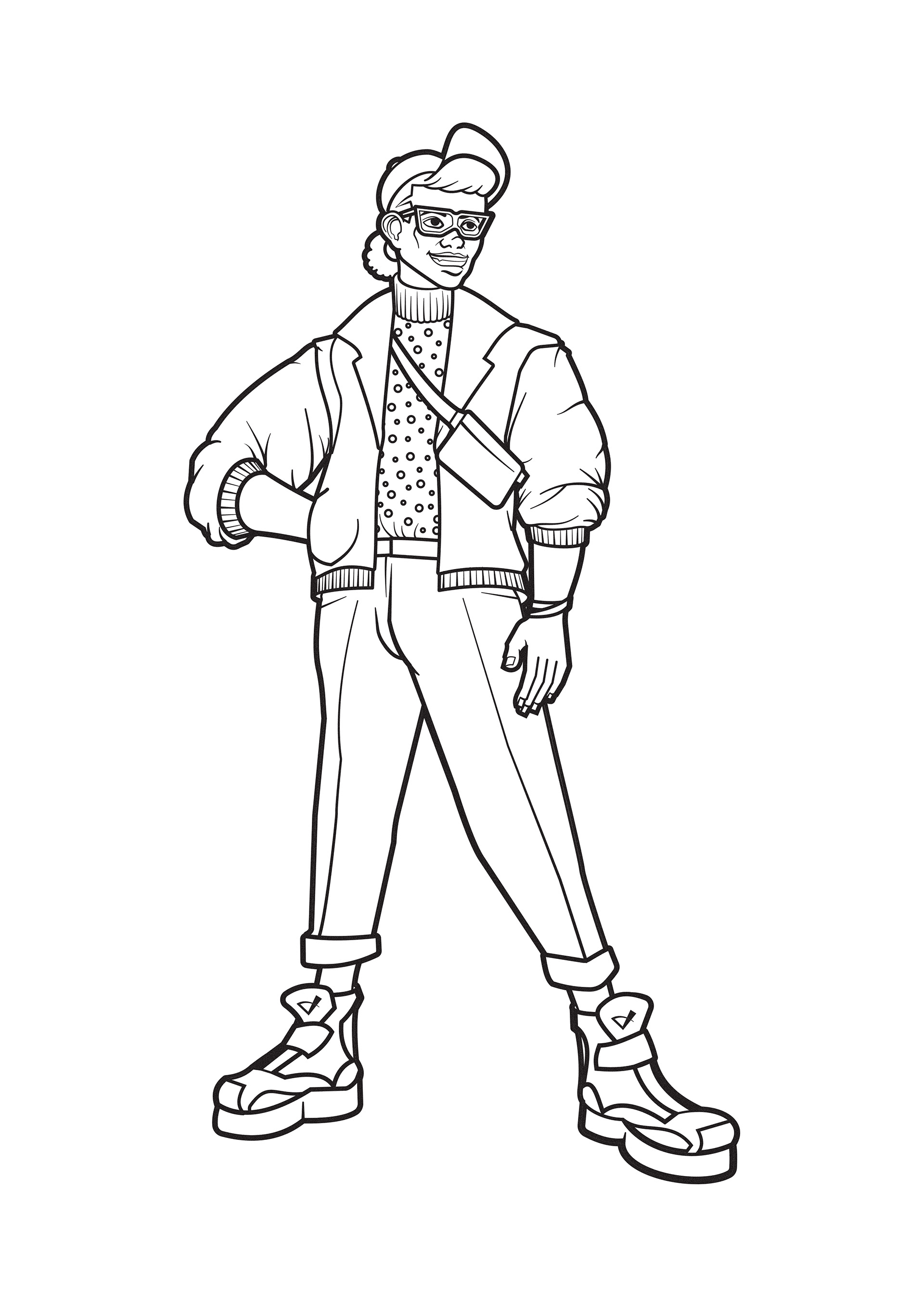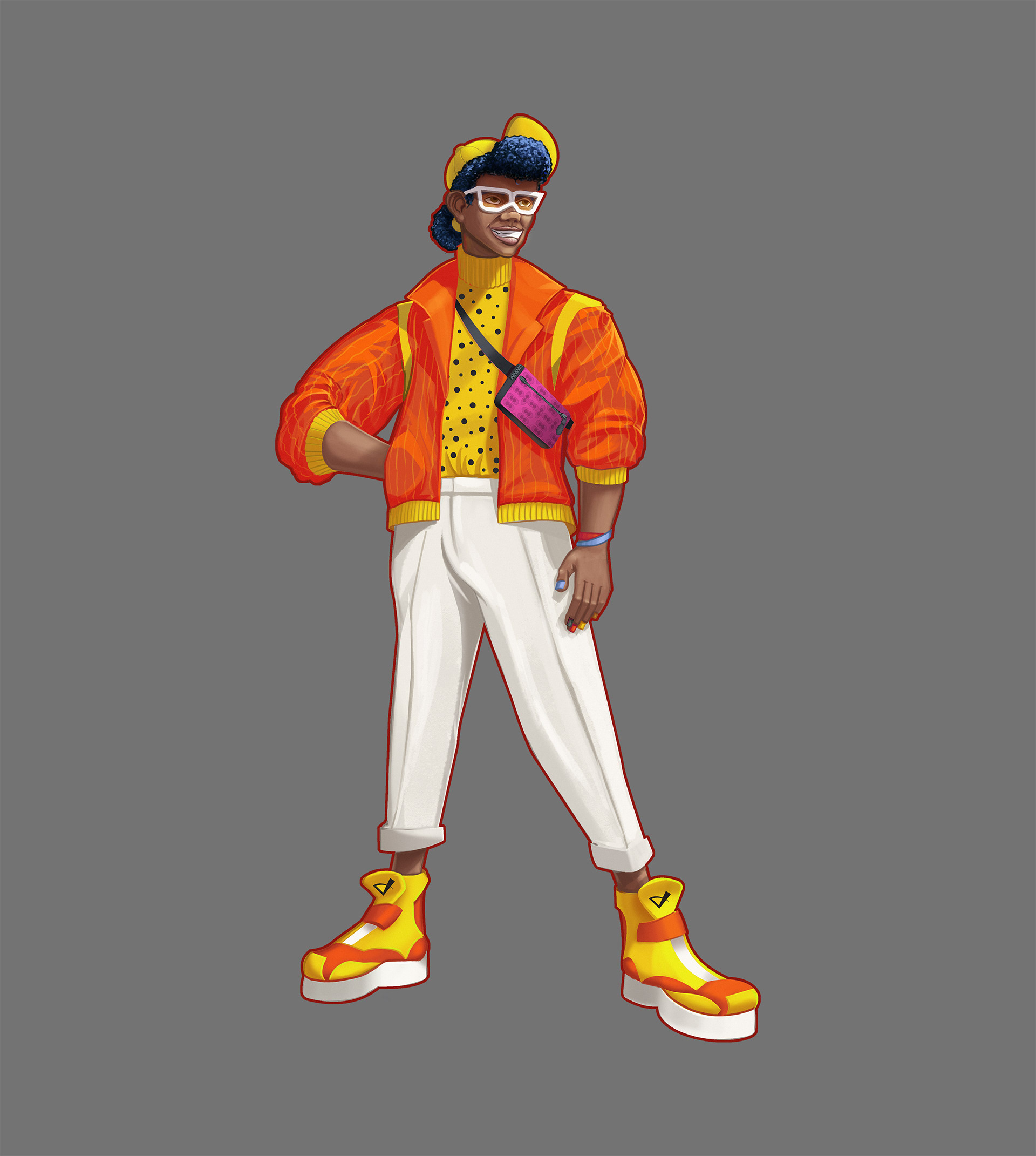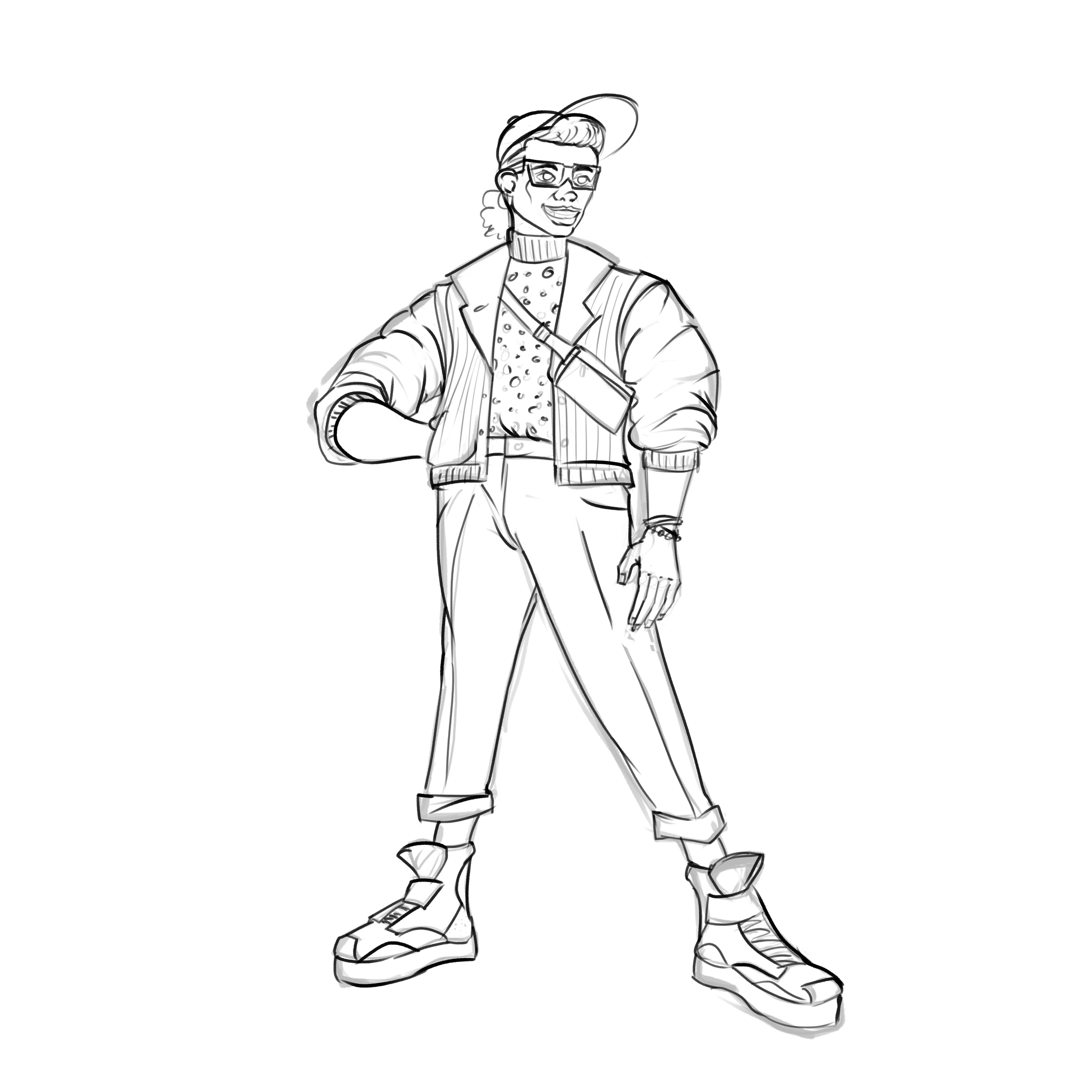 Character Design in a more cartoony style. Lineart, Local to rendered final.