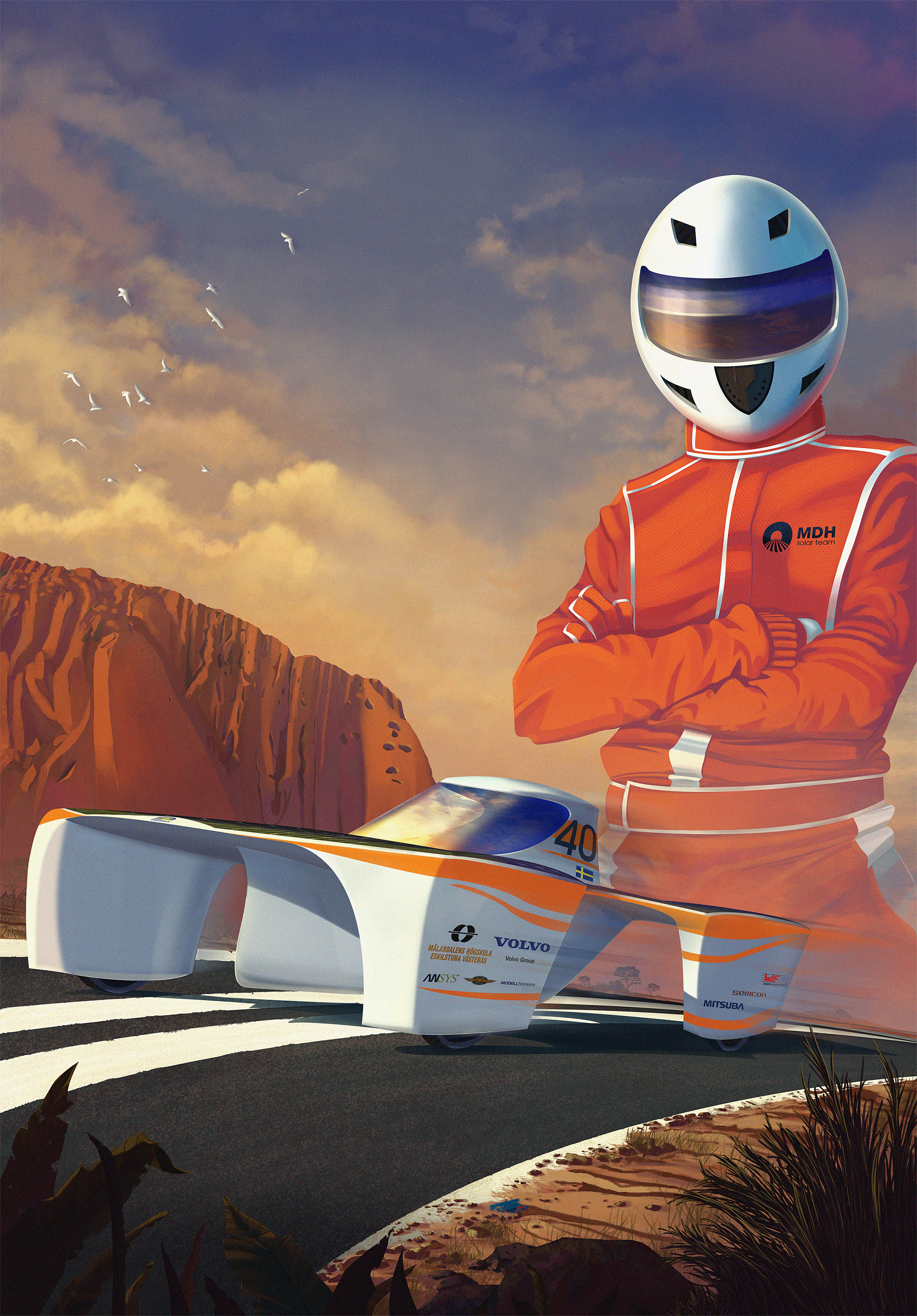 A poster (70x100 cm) of Solar Teams new vehicle concept for World Solar Challenge 2017