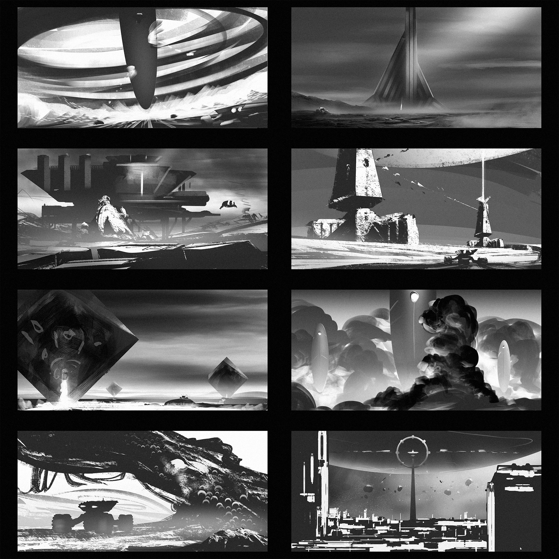 Quick sketches to explore different themes, scenes and design (20-40min each)