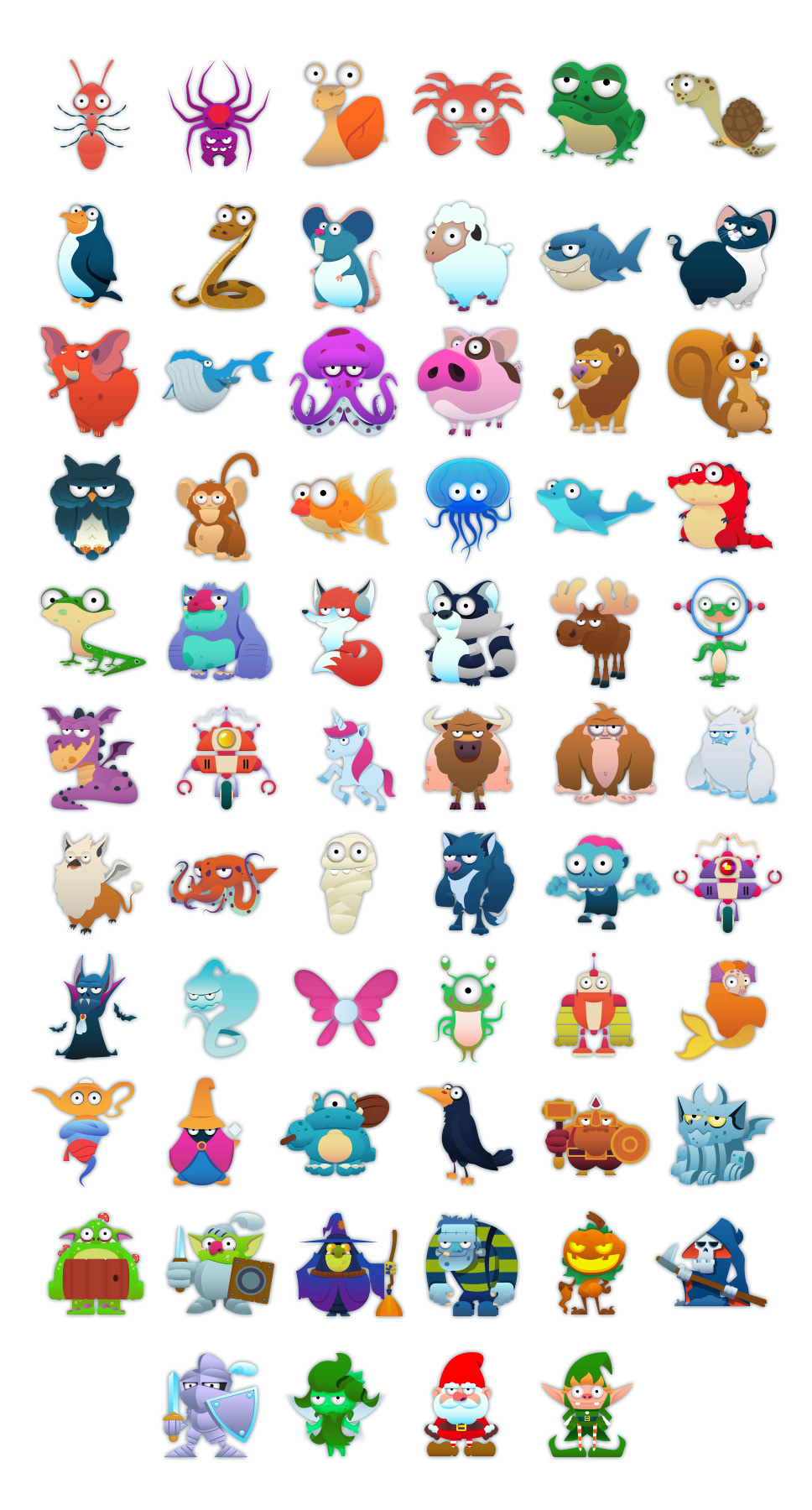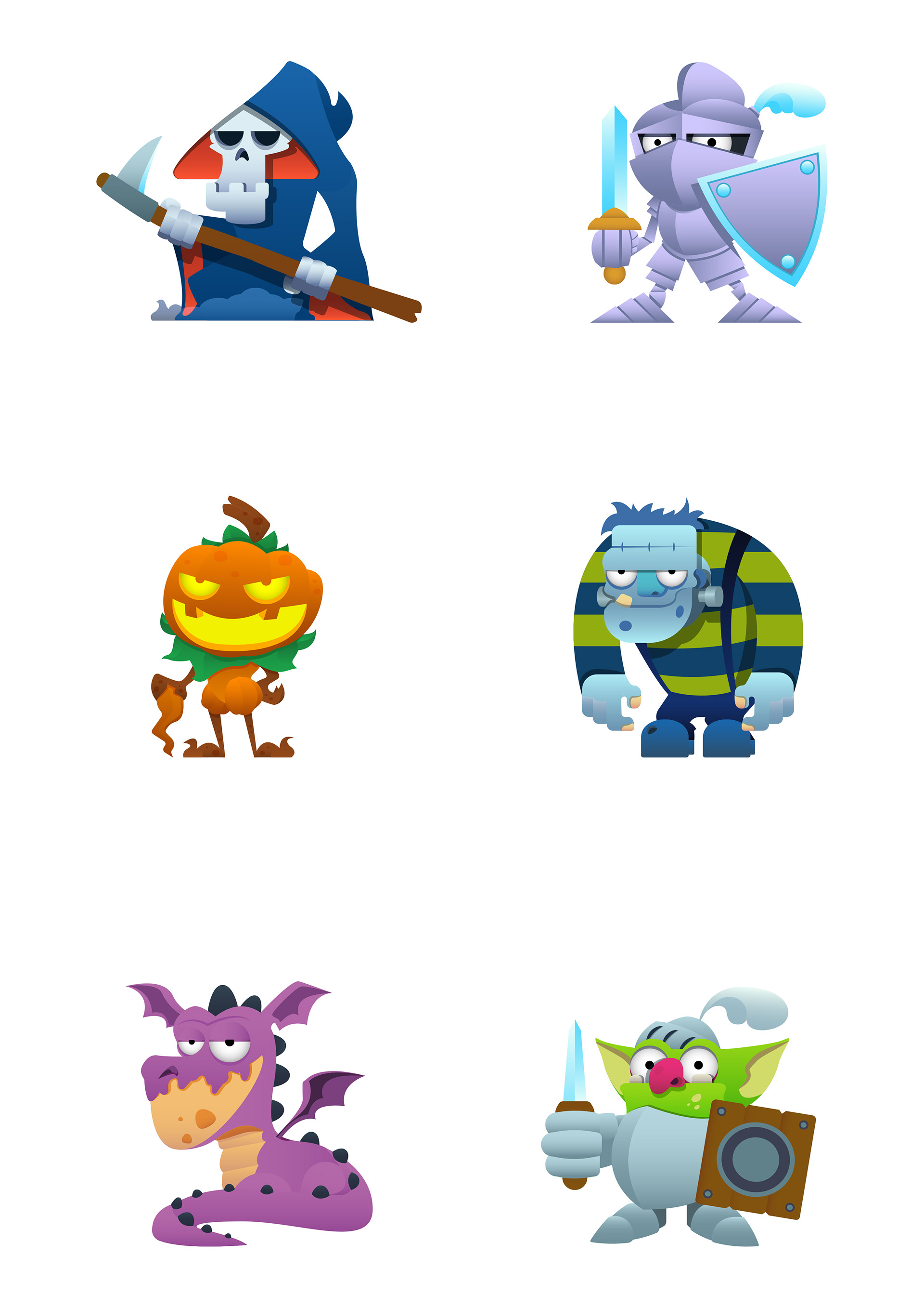 Character Designs made to the mobile game WordBrain, each character represents a new level with a bunch of word puzzles.